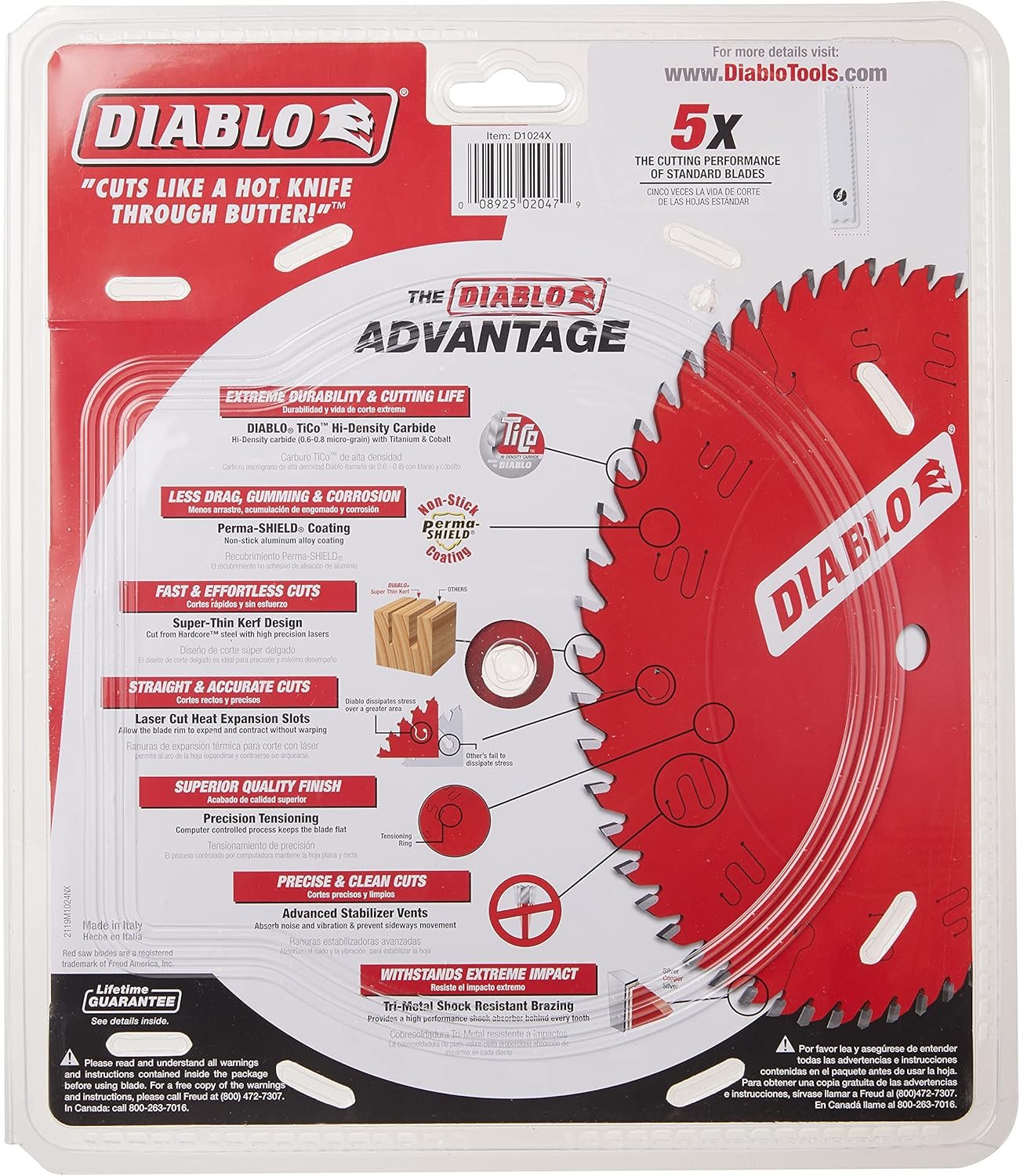 - Perma-SHIELD Non-Stick Coating: Its perma shield coating resists heat, friction, and pitch build-up, keeping cuts cleaner and extending blade service intervals.